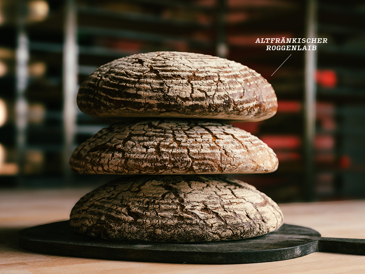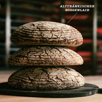 Ein Laib mit fränkischer Seele: Unser Altfränkischer Roggenlaib ist ein reines Roggenbrot. Erst das Roggenmehl von regionalen Mühlen verleiht unserem Brot seinen besonders herzhaften Geschmack. Regionalität, die einfach schmeckt.