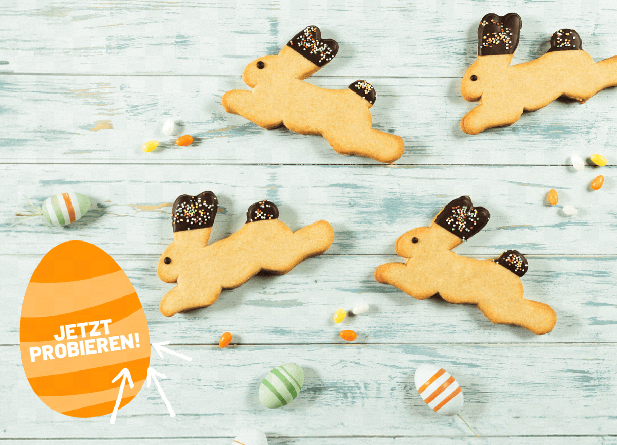 Schnell zugreifen und ab ins Osternest damit! Unser Hasi-Keks sieht mit seinen bunten Schoko-Ohren nicht nur zum Anbeißen aus, er hat auch richtig gute innere Werte: außen knuspriger Mürbteig, innen eine fruchtige Himbeer-Johannisbeer-Füllung, die maximale Frühlingslaune macht.