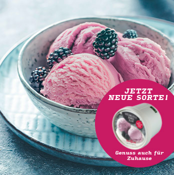 Mach mal Pause und nimm dir deine ganz persönliche Eis-Zeit. Bei uns warten die perfekten Begleiter auf dich. Egal, ob du unser fruchtiges Brombeer-Joghurt-Eis probierst oder als echter Filmfan becherweise das Popcorn-Eis zum Lieblingsfilm genießt: Beide Sorten gibt es jetzt im unwiderstehlichen 250 ml-Eisbecher, inklusive Holzspatel im Deckel zum Mitnehmen.