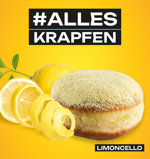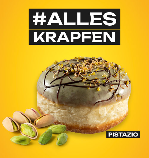 Bei uns ist einfach alles Krapfen. Mit neuem Look und neuen Sorten starten wir in die Krapfenzeit. Finde jetzt bei uns dein Krapfenglück. Vielfältig gefüllt und verziert – hier ist einfach alles drin und alles dran. Was alle Krapfen gemeinsam haben: Sie halten, was sie versprechen und sind einfach alle unwiderstehlich. Egal ob ihr unsere bisherigen Klassiker favorisiert – wie den Hiffenmark-, Schokopudding- oder Quarkkrapfen – oder aber unsere Newcomer LIMONCELLO, gefüllt mit Puddingcreme und Limoncello-Likör, oder PISTAZIO, gefüllt mit Puddingcreme mit Pistaziengeschmack.
