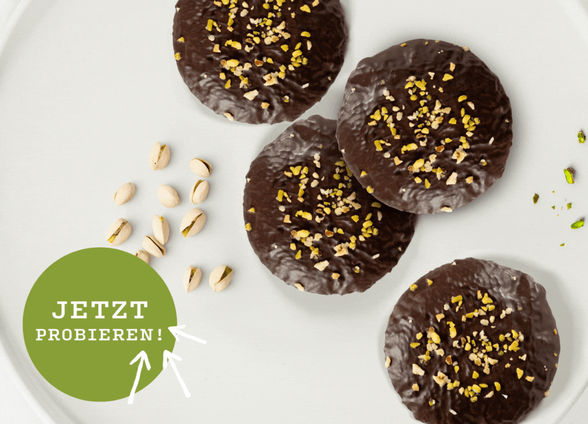Knackig, cremig, himmlisch: Unser Pistazien-Lebkuchen bringt Abwechslung in die Weihnachts-Nascherei. Innen verführerische Pistaziencreme, außen dunkle Schokoladenkuvertüre, getoppt mit Pistazien- und Haselnussstückchen – wir lieben